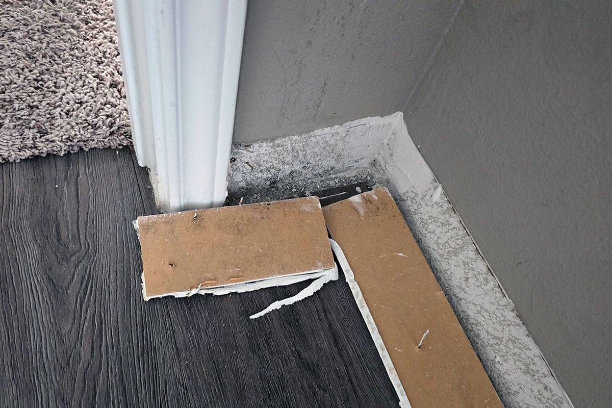 A multifamily property in Aubrey, Texas, was among the buildings affected by the power outages and frozen pipes caused by the prolonged cold. Without consistent heat, interior temperatures dropped, causing pipes within wall cavities to freeze and eventually fail. Property staff responded promptly and took steps to address the resulting water intrusion internally. Initial efforts included limited water extraction and the placement of some drying equipment. However, moisture was not fully removed, wall cavities were not opened, and no moisture mapping or ongoing monitoring was performed. As a result, water remained trapped behind finished surfaces. Over time, secondary mold growth developed, turning what began as a water loss into a large-scale mold remediation project impacting 28 units across four buildings.